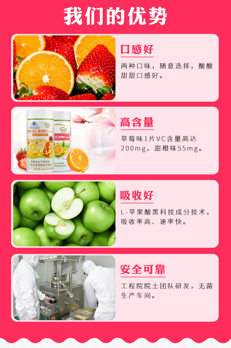 輔料:木(mù)糖醇、麥芽糊精、硬脂酸鎂、L-蘋果酸、天門(mén)冬$ $酰苯丙氨酸甲酯(又(yòu)名阿斯巴甜)、三氯蔗糖、誘惑紅(h'☆™♠óng)鋁色澱、草(cǎo)莓香精