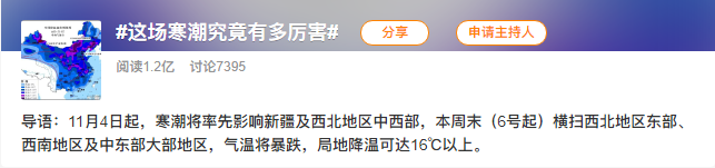 這(zhè)不(bù),新一(yī)波降溫寒潮迅速殺上(™φ ¥shàng)了(le)熱(rè)搜!