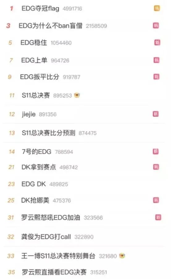 從(cóng)6日(rì)晚開(kāi)始,一(yī)直到(dào)奪冠,微(α¶↕wēi)博熱(rè)搜榜的(de)前幾名一(yī)直占據關于E™✘'λDG和(hé)S11的(de)話(huà)題詞。♠÷₽奪冠那(nà)一(yī)刻,“EDG奪冠”話(huà)題直接ε↔沖爆熱(rè)搜第一(yī)。并且據新浪微(wēi)博統計(jì)≈≥δ,當日(rì)時(shí)段,相(xiàng)關上(shàng)榜熱(r₽βσ§è)搜一(yī)共有(yǒu)80個(gè)。