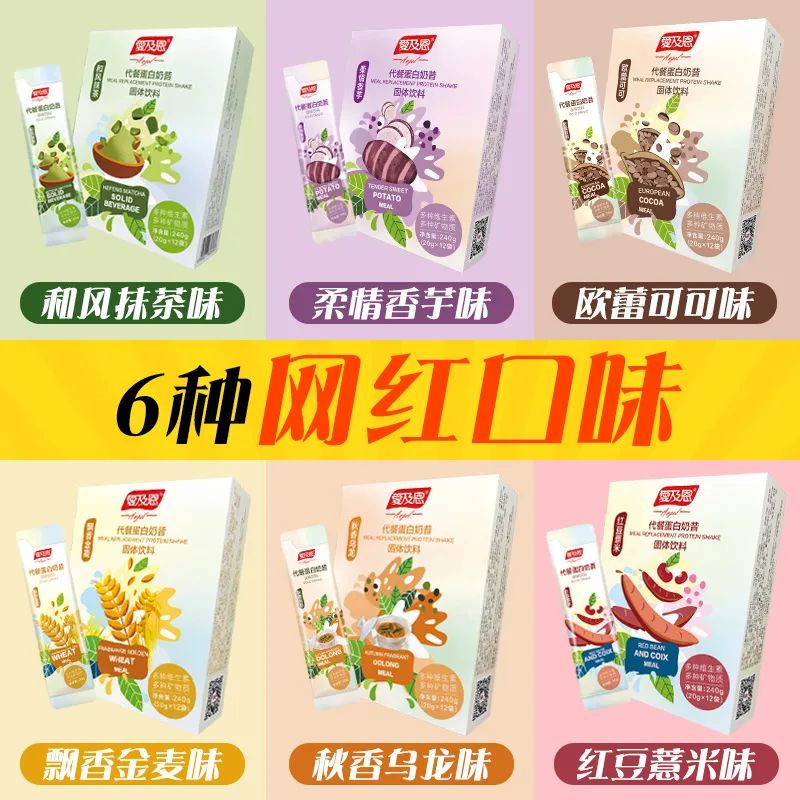 按頭安利!!!被身(shēn)邊人(rén)問(wè∞≤βn)了(le)八百遍的(de)奶昔——愛(ài)及恩代餐奶昔≈★↔γ,一(yī)共有(yǒu)6種口味: