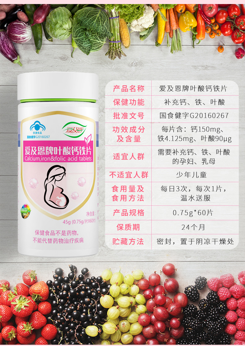 保健功能(néng):補充鈣、鐵(tiě)、葉酸