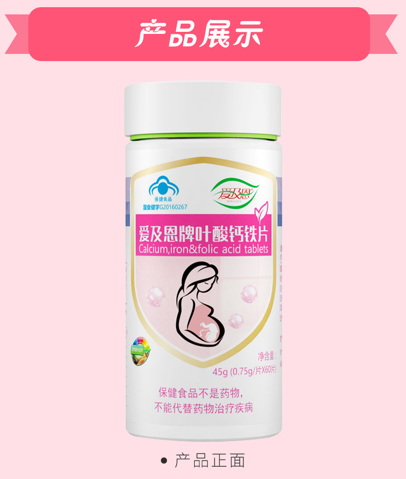 商品名稱:愛(ài)及恩牌葉酸鈣鐵(tiě)片