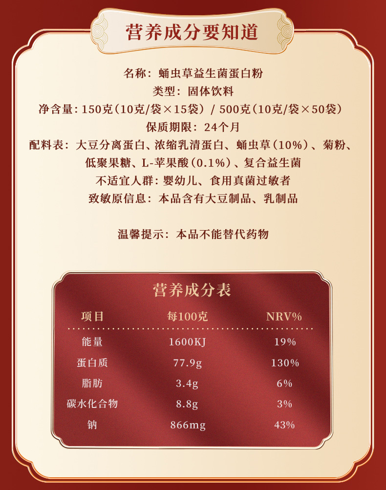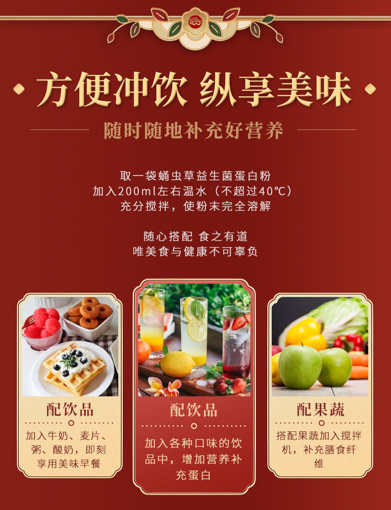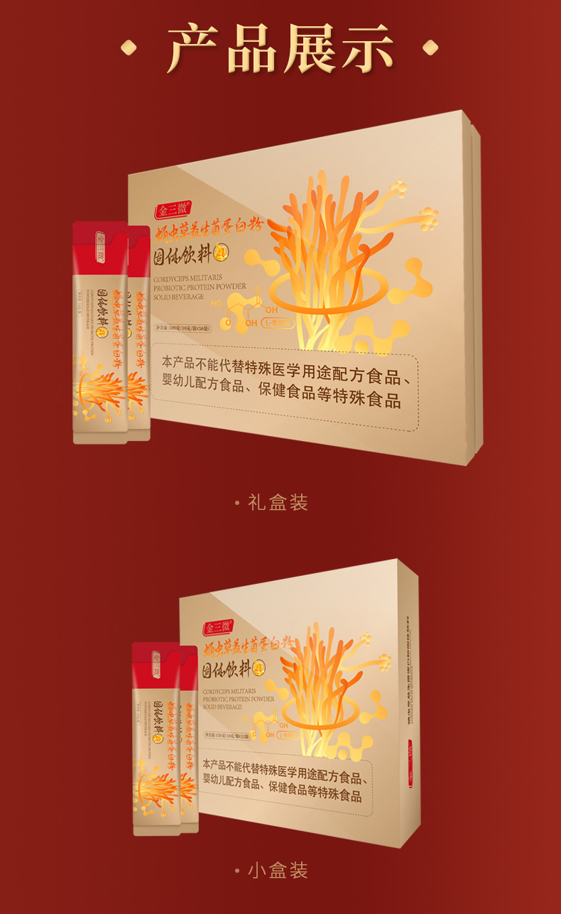 商品名稱:蛹蟲草(cǎo)益生(shēng)菌蛋白(bái)粉固體(t®←ǐ)飲料