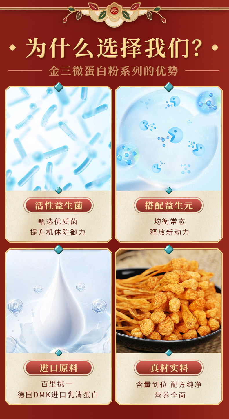 配料表:大(dà)豆分(fēn)離(lí)蛋白(bΩα¶ái)、濃縮乳清蛋白(bái)、蛹蟲草(cǎo)£ ♥σ(10%)、菊粉、低(dī)聚果糖、L-蘋果酸(0.1%)、←π≤複合益生(shēng)菌(短(duǎn)雙歧杆菌TR1$ 03、植物(wù)乳植杆菌NKK20、羅伊氏粘液乳杆菌₽ε®DRTR,每100g添加量≥500億CFU)。菊粉添加量1g/100g,菊粉¶λ食用(yòng)量≤15g/天。